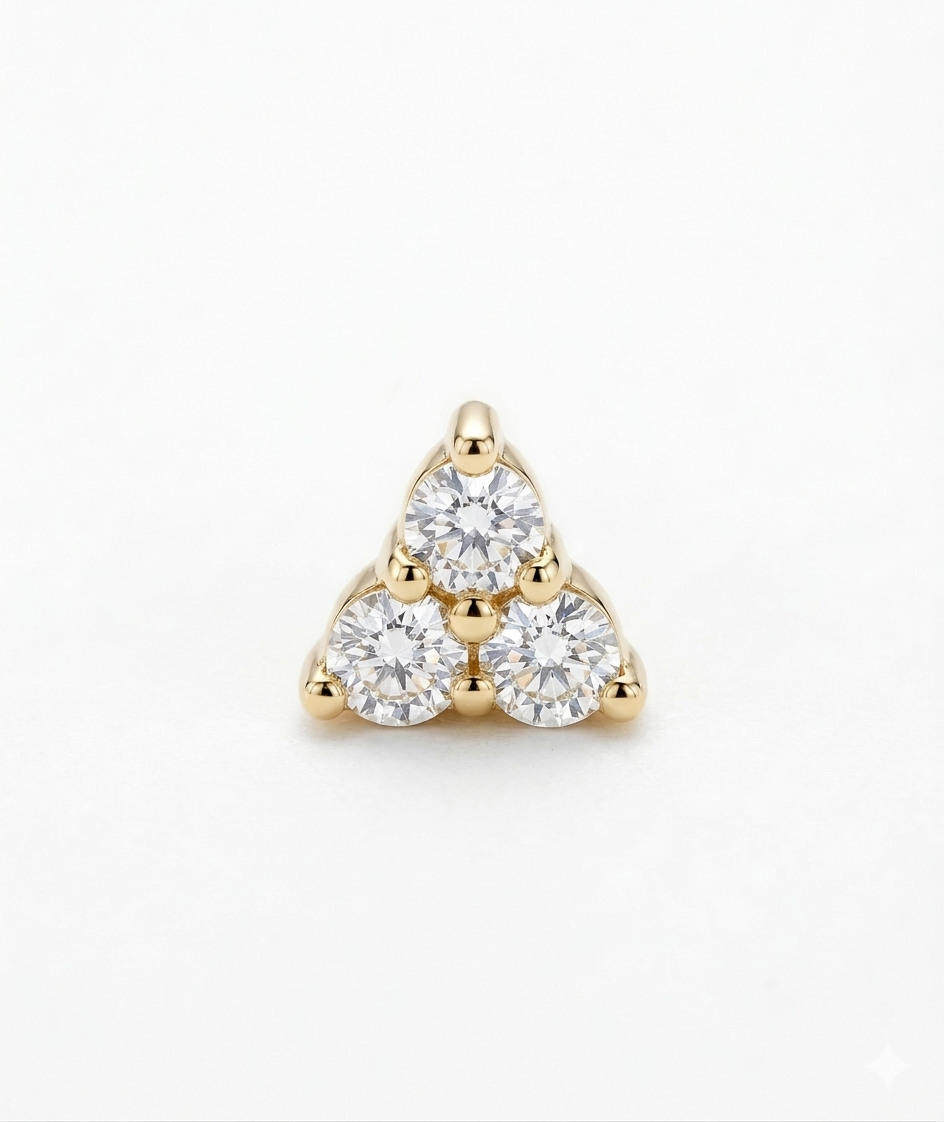 עגיל פירסינג עשוי זהב 14k משובץ זרקונים.